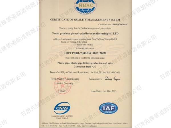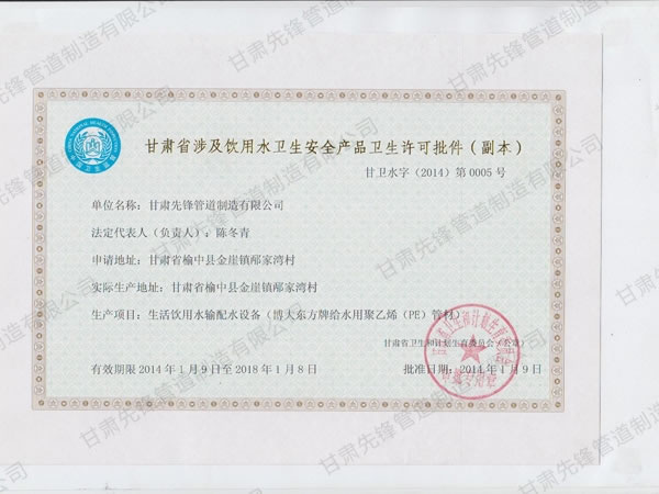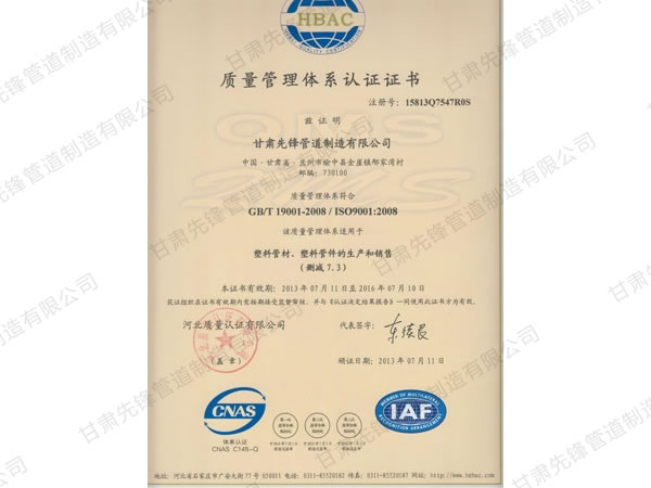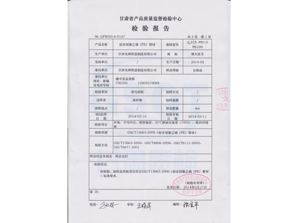 甘肅先鋒管道制造有限公司成立于2010年1月1日,注冊(cè)資金10000萬(wàn)元。是一家集設(shè)計(jì)、研發(fā)、制造、營(yíng)銷(xiāo)、服務(wù)于一體的創(chuàng)新型企業(yè)。公司主要以聚乙烯和聚丙烯化工原料生產(chǎn)的HDPE、PPR、PERT、MPP給(供)水、排水管道、電力穿線(xiàn)管及家裝地暖管道。產(chǎn)品為新的環(huán)保節(jié)能型產(chǎn)品無(wú)排放。公司擁有一整套先進(jìn)的生產(chǎn)設(shè)備和一批高素質(zhì)的技術(shù)人才,產(chǎn)品檢驗(yàn)方法完善、生產(chǎn)技術(shù)力量雄厚、管理方法科學(xué)。